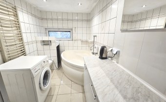 Na powierzchnię większego domu składają się: duży salon uzyskany przez wyburzenie ściany działowej między pokojami, kuchnia, łazienka, przedpokój. Na piętrze: 3 pokoje plus łazienka. Możliwość adaptacji poddasza.
