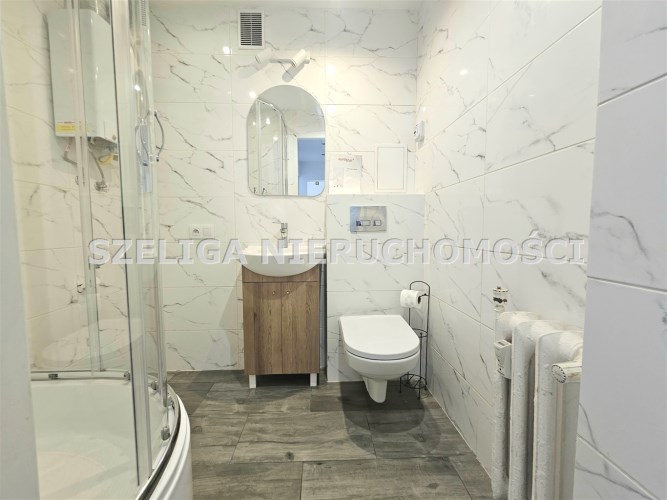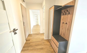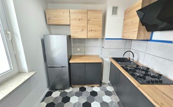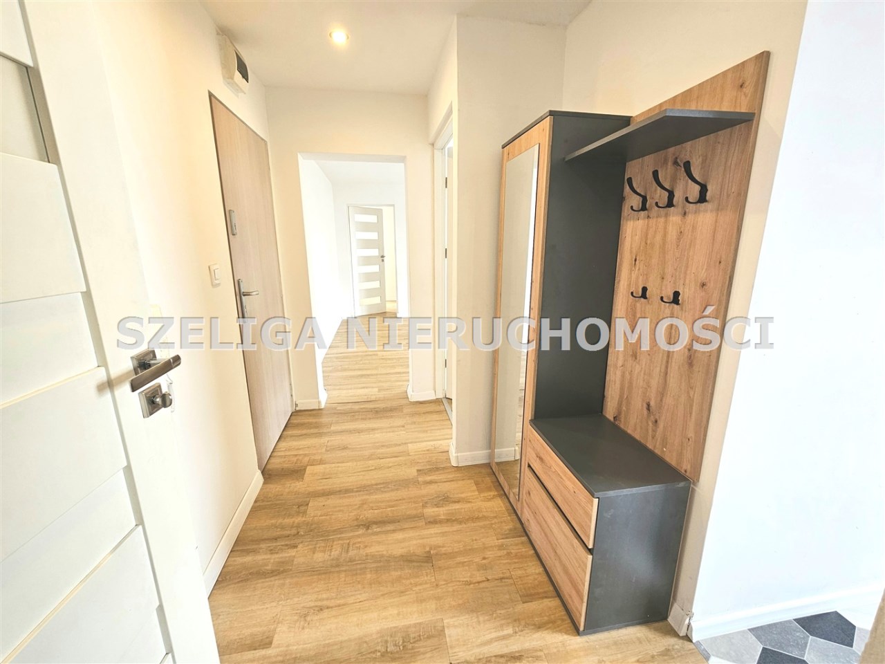 Osiedle Tysiąclecia. Słoneczne mieszkanie z balkonem usytuowane w bloku. Pow. 47,84 m2, 3 pokoje, p. 9/10. Dwa pokoje w układzie przejściowym, wejście do trzeciego pokoju z przedpokoju.  Łazienka z wc.  Umeblowana i wyposażona  tylko kuchnia - lodówka) i łazienka. Umeblowanie i wyposażenie widoczne na zdjęciach. Nowe umeblowanie kuchni. Mieszkanie czyste, zadbane. Po remoncie  nie było zamieszkiwane. C.o. z sieci miejskiej, c.w. - junkers.. Bardzo dobra lokalizacja, na osiedlu pełna infrastruktura, wszędzie blisko.  Czynsz: 2.300 zł  (obejmuje opłatę dla zarządcy, śmieci) plus media (energia elektr., woda, gaz, c.o.)  Kaucja.